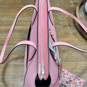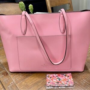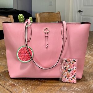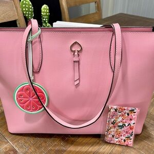Kate Spade’s Adel large tote bag in carnation pink. Will include the Kate Spade watermelon hang tag (originally sold for over $100 on its own) as well as a perfectly matching twilly new in package.