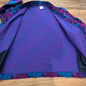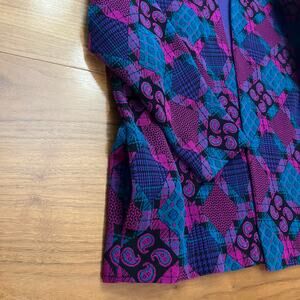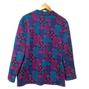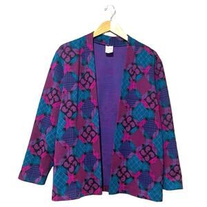 Vintage Sweater Blazer Size 12 70s 80s Funky Paisley Diamond Open Front Jacket
