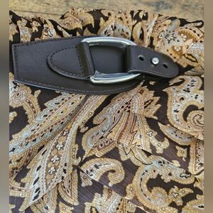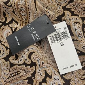 Stylish maxi dress with intricate paisley design. Rich brown and cream tones. Perfect for any occasion. Fully lined!