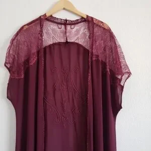 This boho Smell the roses lace embroidered Duster is a great addition to any wardrobe. Has general wear, please see photos for details.