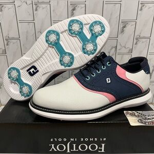 New FootJoy Traditions Waterproof Golf Shoes Cleats Blue White Pink Men 8.5 - 13