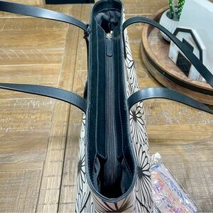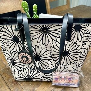 Kate Spade’s Rosa Daisy medium tote bag in black and cream Daisy print with a light pink and black hang tag. Will include a twilly new in package.