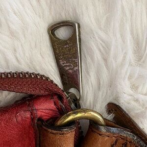 Beautiful red genuine leather bag with matching wallet, featuring durable straps and a classic Fossil design. Perfect for everyday use.