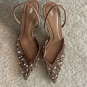 Zara size 40 brown heals. Mesh with beading and sequence.Worn once.US size 9-9.5