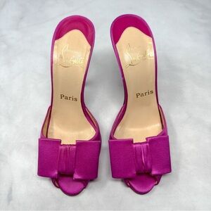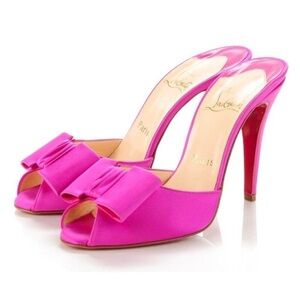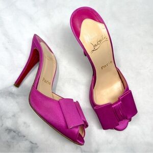Christian Louboutin Vintage Joli-Noeud Silk Bow Slip On Mule Sandal Heel Pink 37