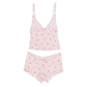 Skims Stretch Lace Triangle Camisole & Shorts Set In Pink/Red Bow Print