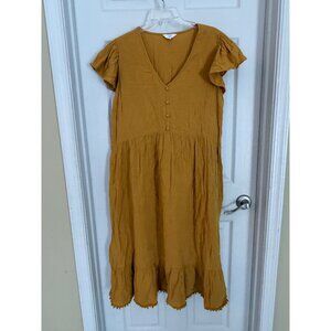 Time & Tru Mustard Yellow Flutter Sleeve V-Neck Maxi Dress XXL