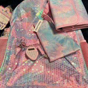 Little and Big Girls Sequined Tie Dye Backpack, 6 Piece Set