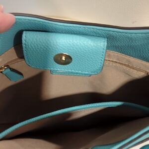 Chic Nanette Lepore shoulder bag in vibrant turquoise. Perfect for everyday style. Sleek and functional.