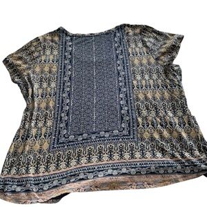 Bundle of 2 Lucky Brand Blue and Cream Bohemian Aztec Geometric Tops Size 2X