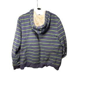 LL Bean Navy Blue Green Striped Fleece Lined Hoodie Full Zip XL