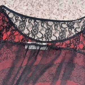 black and red stripped floral design with lace back. sheer material