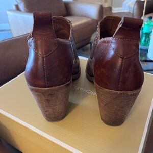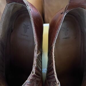 Elegant chestnut Frye leather booties with intricate stitching. These are well loved and well cared for - already broken in size 10M. Please look at pictures carefully I have included all angles for your review! They are still full of life and perfect to complete any stylish Jean outfit! Contact me with any questions.