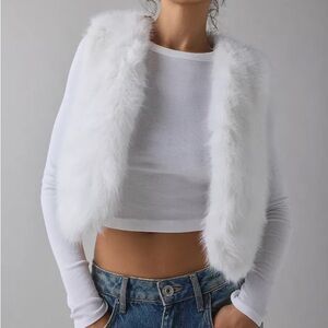 Vintage-inspired vest designed in a luxe, plush faux fur. Faux fur vest designed with v-neckline, sleeveless design and notched v-shape hem. Perfect layered & on its own!