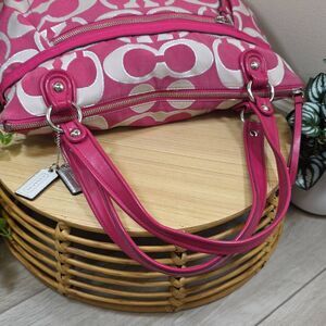 Brand / Model: Coach — Poppy Metallic Signature Sateen Glam Tote