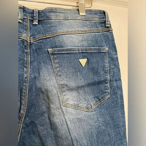 An everyday essential, these high-rise jeans feature a skinny fit and whiskering. Made with recycled plastic.