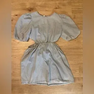 Chambray Puff Sleeve Dress