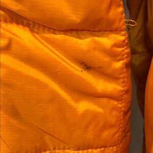 Vibrant orange jacket with sturdy zipper. Ideal for outdoor fun. Great condition, only cal out there is a mark I’m sure would come out pictures below. Size large. Smoke free home.