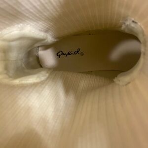 Qupid Cream Ankle Boots with Tan Soles 7