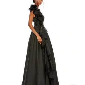 Mac Duggal Black Ruffled Evening Gown
