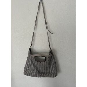 Anthropologie Grey Faux Leather Wool Woven Large Slouchy Hobo Satchel Bag
