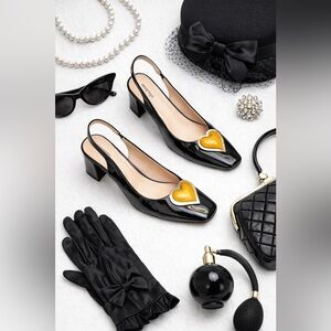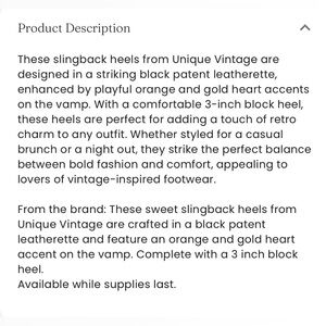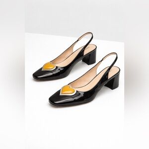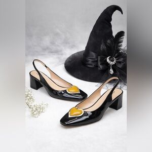 Unique Vintage ‘50s Black & Orange Heart Leatherette Slingback Heels, Sz 6, NWT!