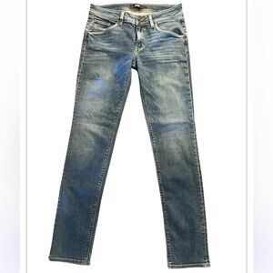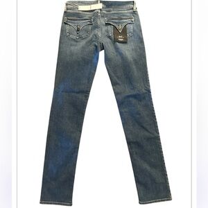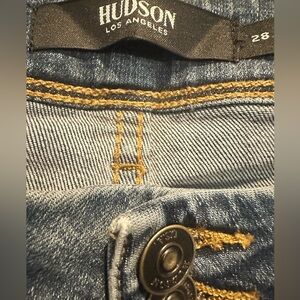 Experience the perfect blend of style and comfort with Hudson Jeans' blue skinny denim. These jeans offer a sleek fit that contours to your legs, providing a modern and timeless look. The uniform wash and mid-rise design make them a versatile addition to any wardrobe. Plenty of stretch