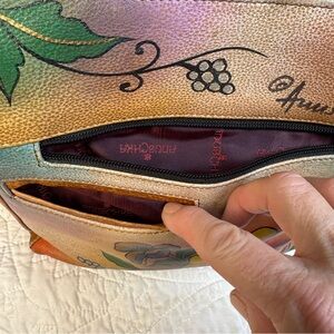 ANUSCHKA Shoulder Bag Satchel Leather Hand-Painted Butterfly Floral Signature