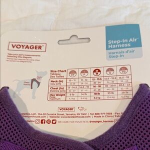Ensure your dog's comfort and safety with the Voyager Step-In Air Harness. This purple harness is designed for easy use and a secure fit, perfect for daily walks. Fits a pup with 12.13.5” neck/16-18” chest/max of 18 lbs
