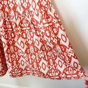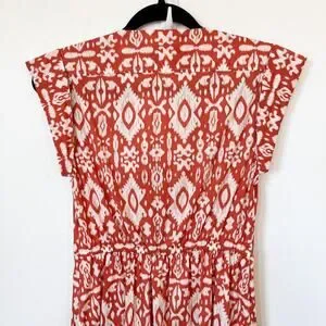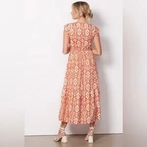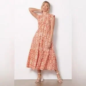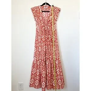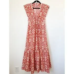 Evereve BB Dakota Emersyn Tiered Midi Dress XS Deep V-Neck Batik Cotton Spring