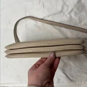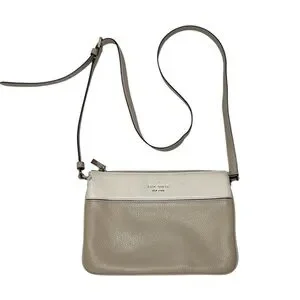 Kate Spade Leila Triple Gusset Two Toned Beige and Cream Pebbled Crossbody Bag. Elevate your style with this elegant Kate Spade crossbody bag. Featuring a chic beige and cream design, it's perfect for any occasion. Enjoy the blend of fashion and functionality with this must-have accessory. Very good used condition.