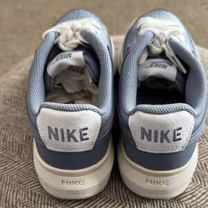 Nike platform sneakers, leather chambray blue. Ideal for everyday wear. Comfortable footbed, great for walking or shopping.