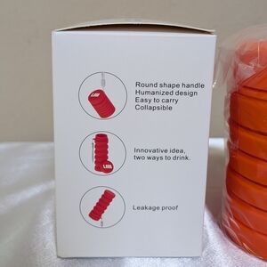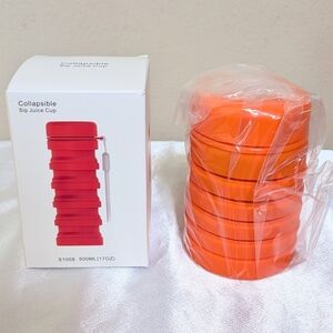 Bright orange collapsible sip juice cup