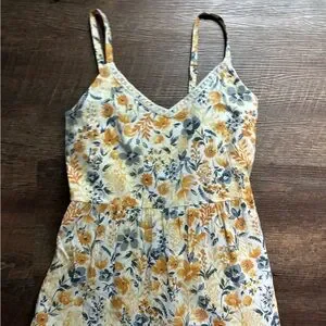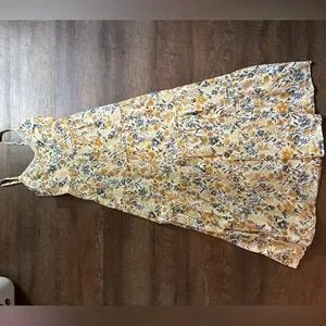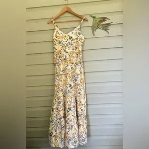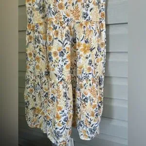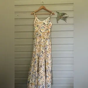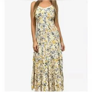 JOIE Floral cotton tiered Maxi Dress yellow & gray boho coastal cowgirl Sz 6 EUC