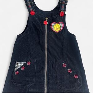Vintage 90s Looney Tunes Tweety Bird Little Girls Jumper. Size 7/8. Adjustable straps & fully zips up front.