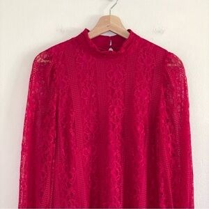 NWT Anthropologie Maeve Lace Open Back Mini Dress in Raspberry Red, Size 8 / Medium.
