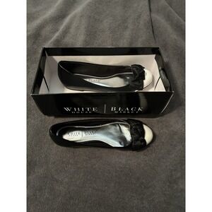 White House Black Market Ballet Style Black Patent White Toes Flats, Size 7