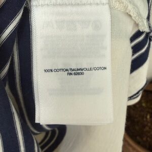 Lands End White and Blue Striped Cotton V Neck T Shirt