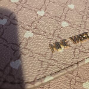 Nine West cross body bag is good for teens. Cute Heart pattern. The pen is for reference on what you can fit in there. ‼️THE PLUSHIE IS NOT FOR SELL JUST THE BAG‼️