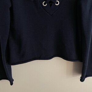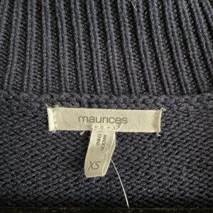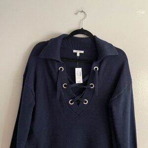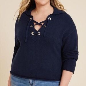 Maurices Women XS Navy Blue Preppy Coastal Relaxed Lace Up Collared Sweater NWT