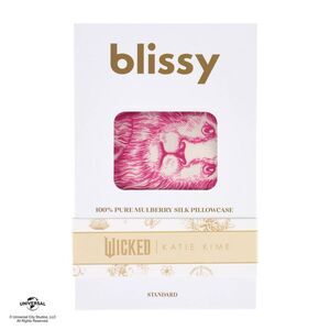 The luxury of silk meets the magic of Wicked! Bring a little piece of Oz home with this enchanting collection.Woven from 100% pure mulberry silk, the Blissy Pillowcase is designed to offer you the perfect sleep experience. With Blissy, you wake up feeling refreshed with gorgeous, frizz-free hair and even-toned skin. Blissy’s low-absorbent silk ensures your hair and skincare products remain where they should—on your hair and skin, not absorbed by the pillowcase. The Blissy Pillowcase is hypoallergenic and temperature-regulating, letting you enjoy rejuvenating sleep tailored for your comfort. Unlike synthetic satin, Blissy uses pure silk free from harsh dyes and chemicals. You'll get a cool, breathable night’s sleep while enjoying cloud-like softness. Comes in standard size.