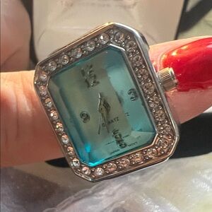 Stylish silver ring watch featuring striking blue accents. A unique accessory for any occasion.