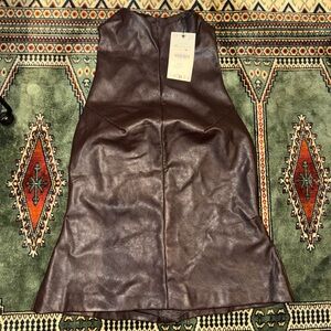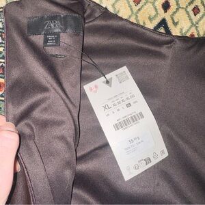 NWT Zara Brown Sleeveless mock neck Faux Leather Zip back Top - size XL