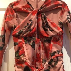 House of CB Red and Pink Floral Long Sleeve Dress