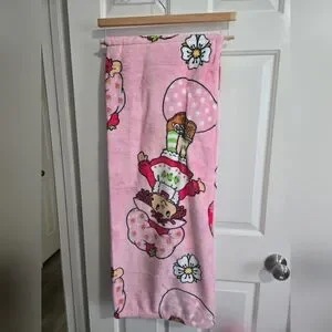 Cozy pink blanket featuring Strawberry Shortcake design. Perfect for kids' rooms or as a gift.