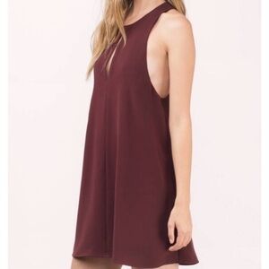 Tobi Keyhole Winslet Plum Shift Dress Size M NWT. Dramatic Racerback and keyhole front. Beautiful deep plum color. Flirty swing silhouette. Lined. Back zip closure. Sold out online. Shell/lining are polyester. Hand wash cold.