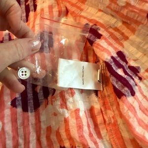 Brand new Tanya Taylor one piece swimsuit and matching cover up. These pieces are in pristine condition and have never been worn. The tags were removed, but the extra button is still attached to the cover up in a bag. The cover up is a size 4 and the suit is a size M - I am a true size 4 and both fit perfectly (the suit seems to run on the smaller side).
