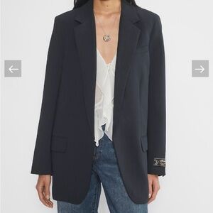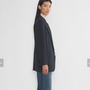This is an open-front blazer with a notched lapel and shoulder pads for structure. It’s expertly tailored with Crepette which never wrinkles.
