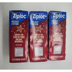 Ziploc Holiday Edition Quart Storage Bags 24 Count Each Pack Set Of 3 (72 bags t