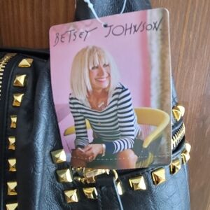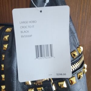 Betsey Johnson Large Hobo Croc To It Black and Gold Studded Women's Bag